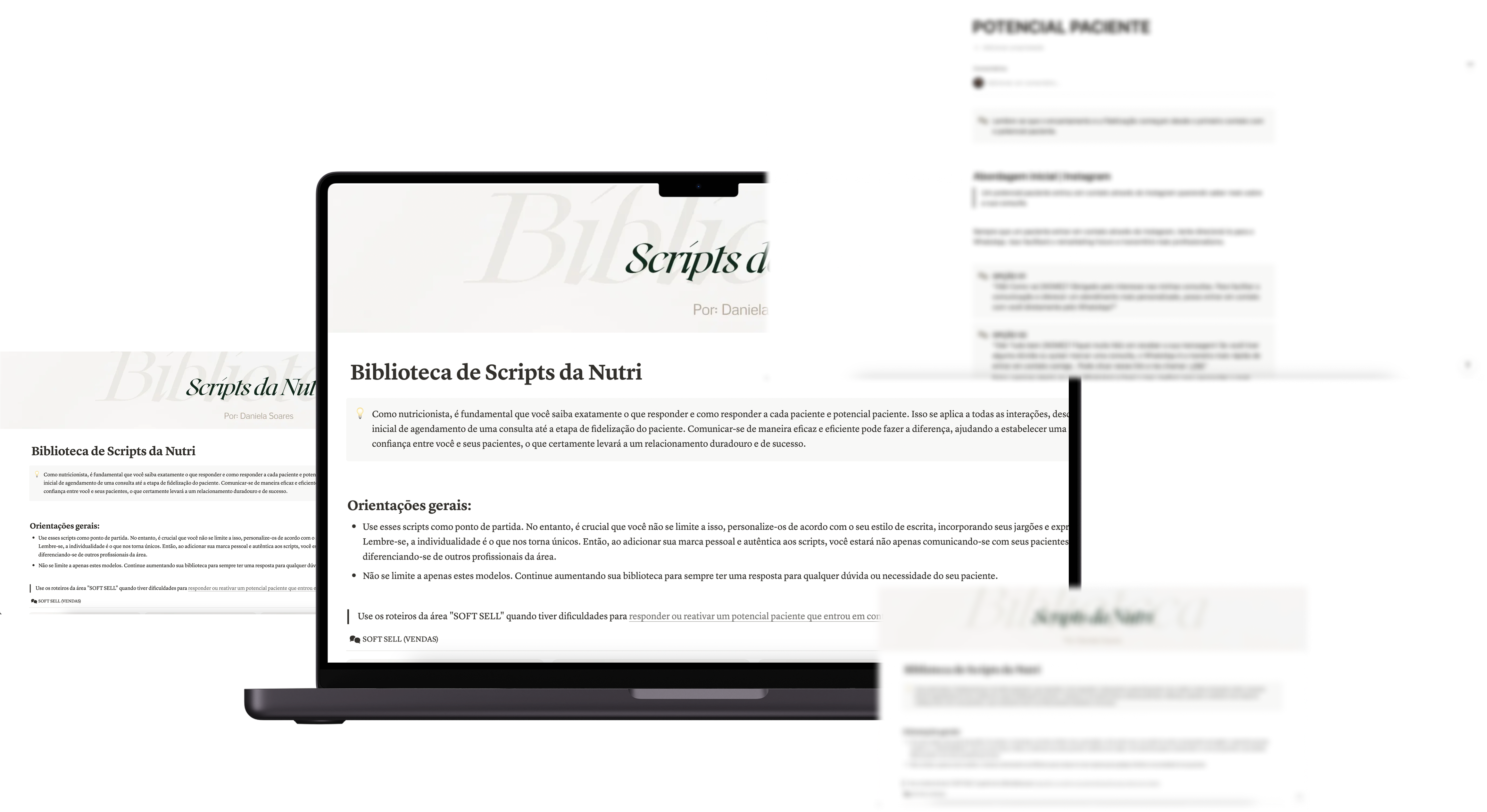 Notion com +60 Scripts de mensagens de vendas e para responder dúvidas de pacientes - para você copiar e colar;