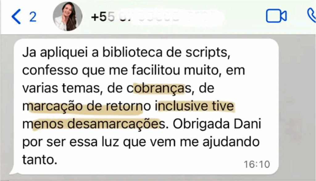 Utilize os scripts para fazer Onboarding de novo paciente, confirmar agendamento, solicitar feedback, fazer remarcações, enviar orientações, fazer acompanhamento e muito mais!