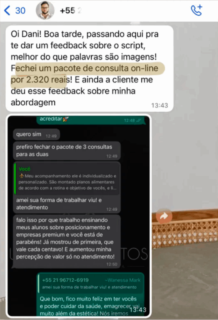Mas hoje eu quero firmar um compromisso com você, e te provar que sim, é possível transformar simples mensagens com potenciais pacientes em pix na conta e depoimentos!